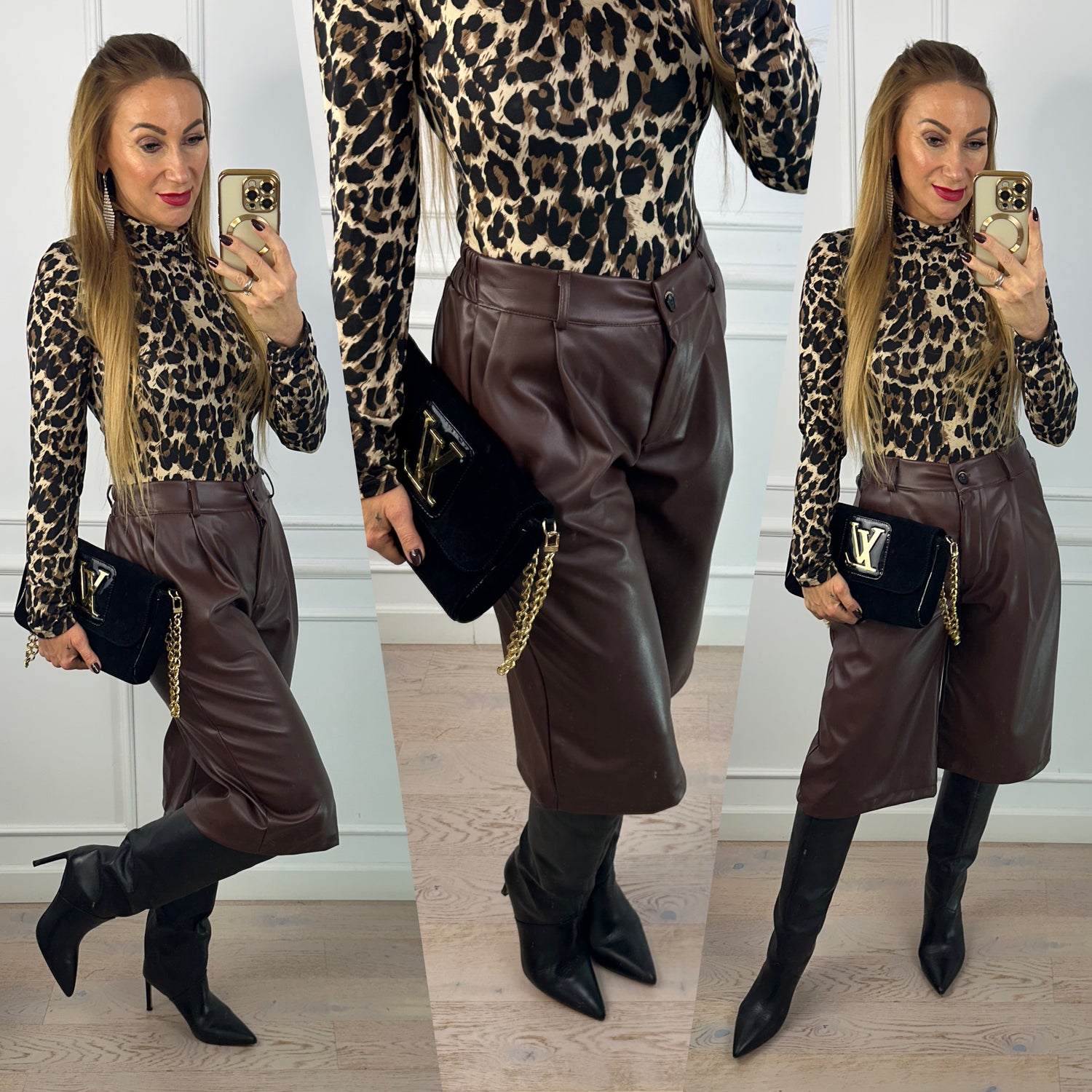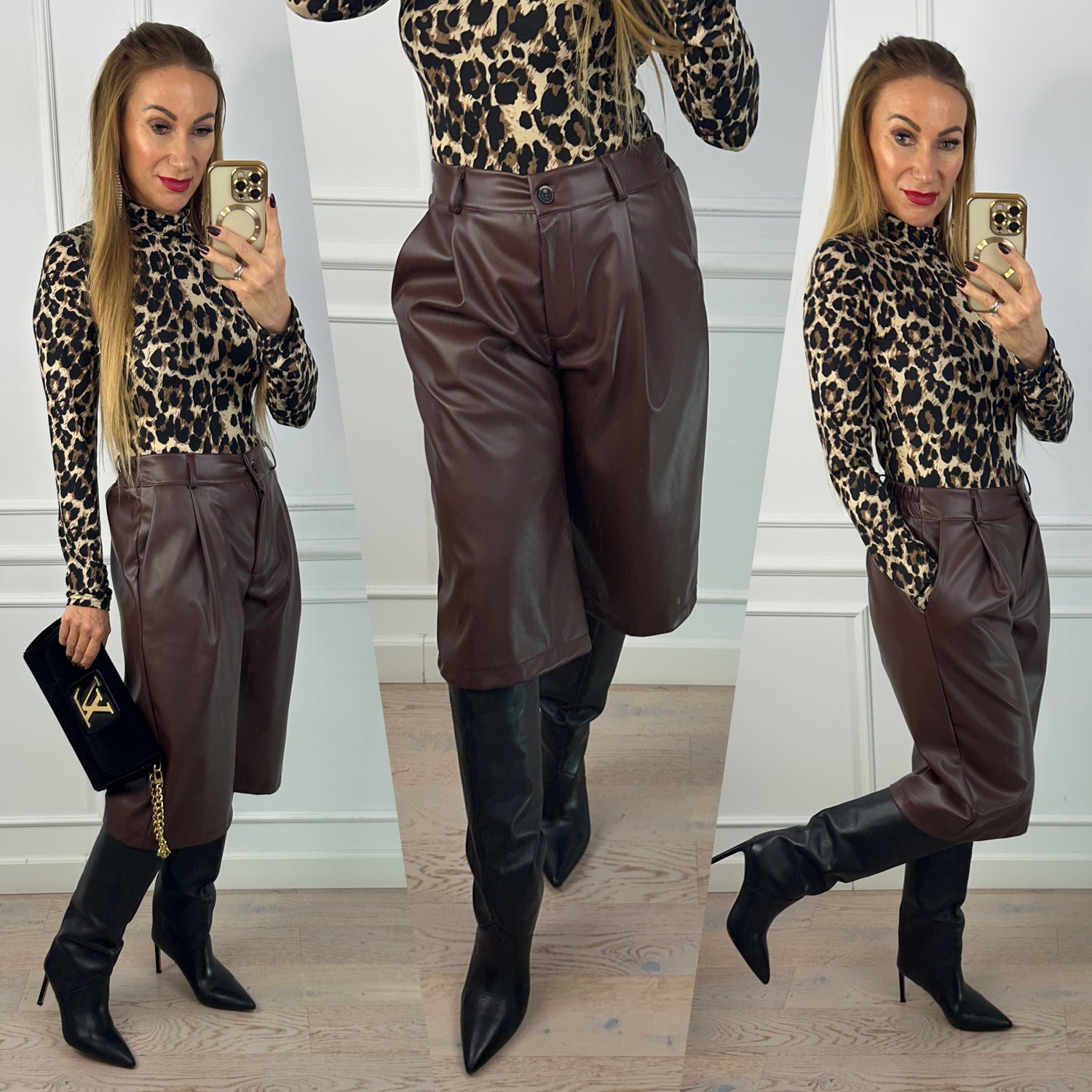 Bermudy z eko skóry KOTTA / BRĄZOWE