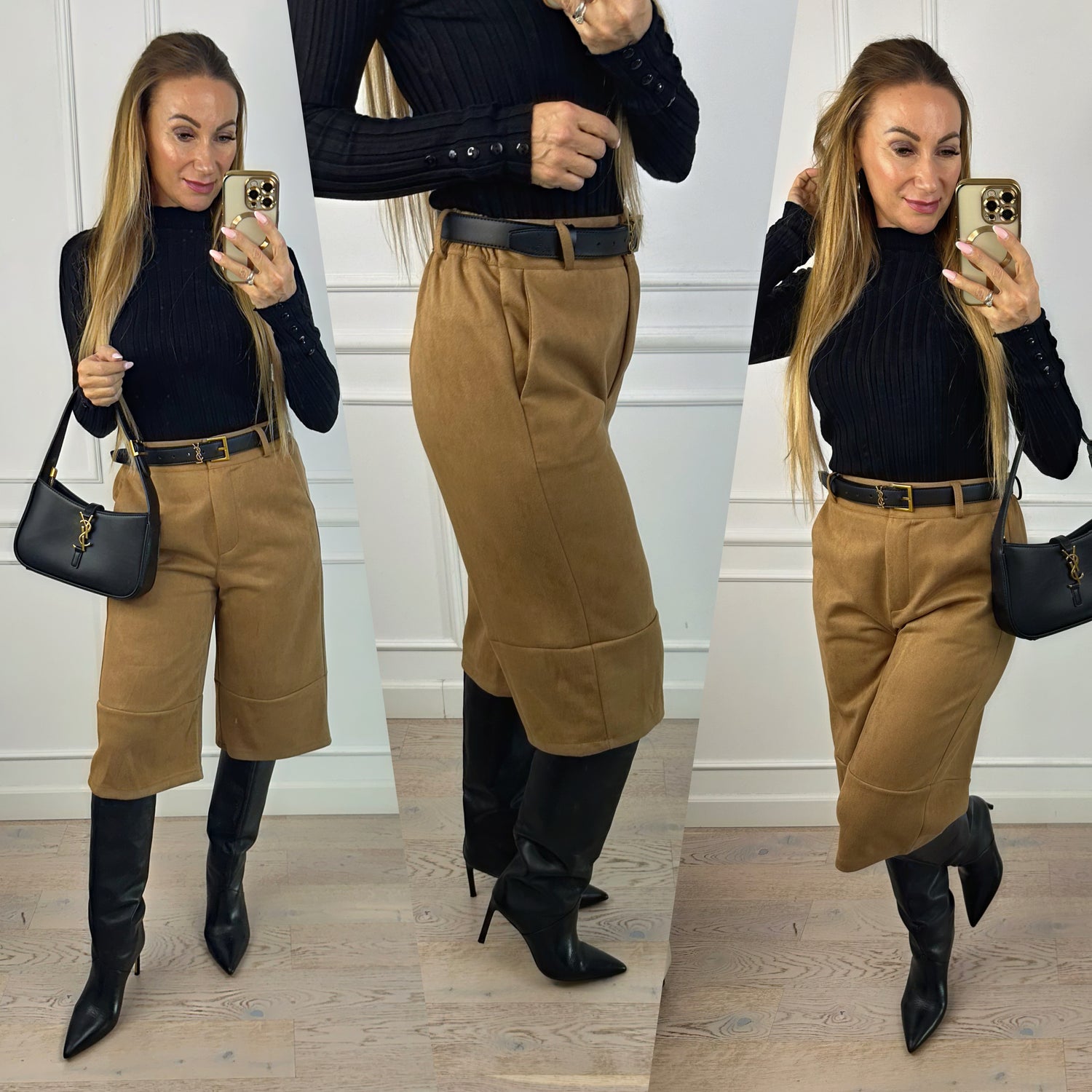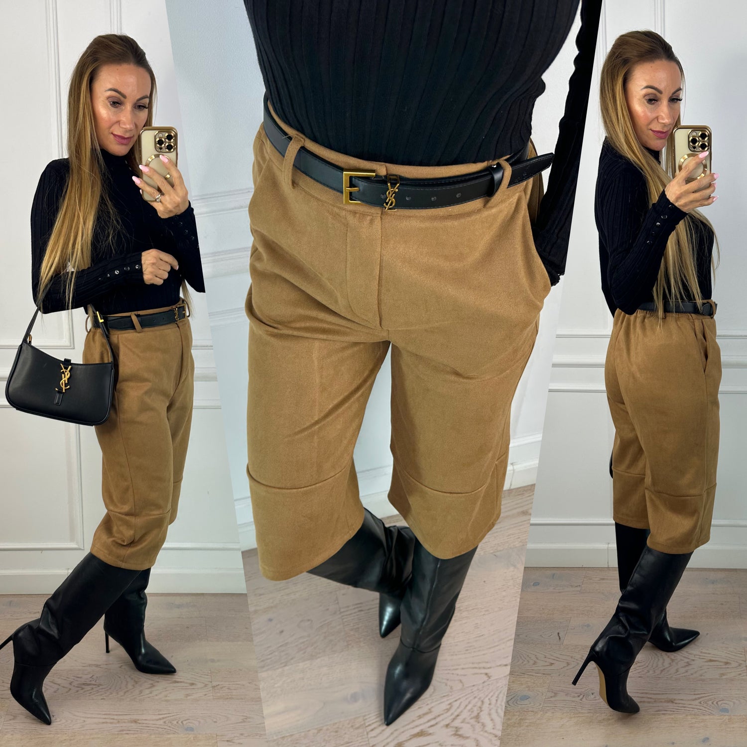 Bermudy ze sztucznego zamszu DOVER / CAMEL