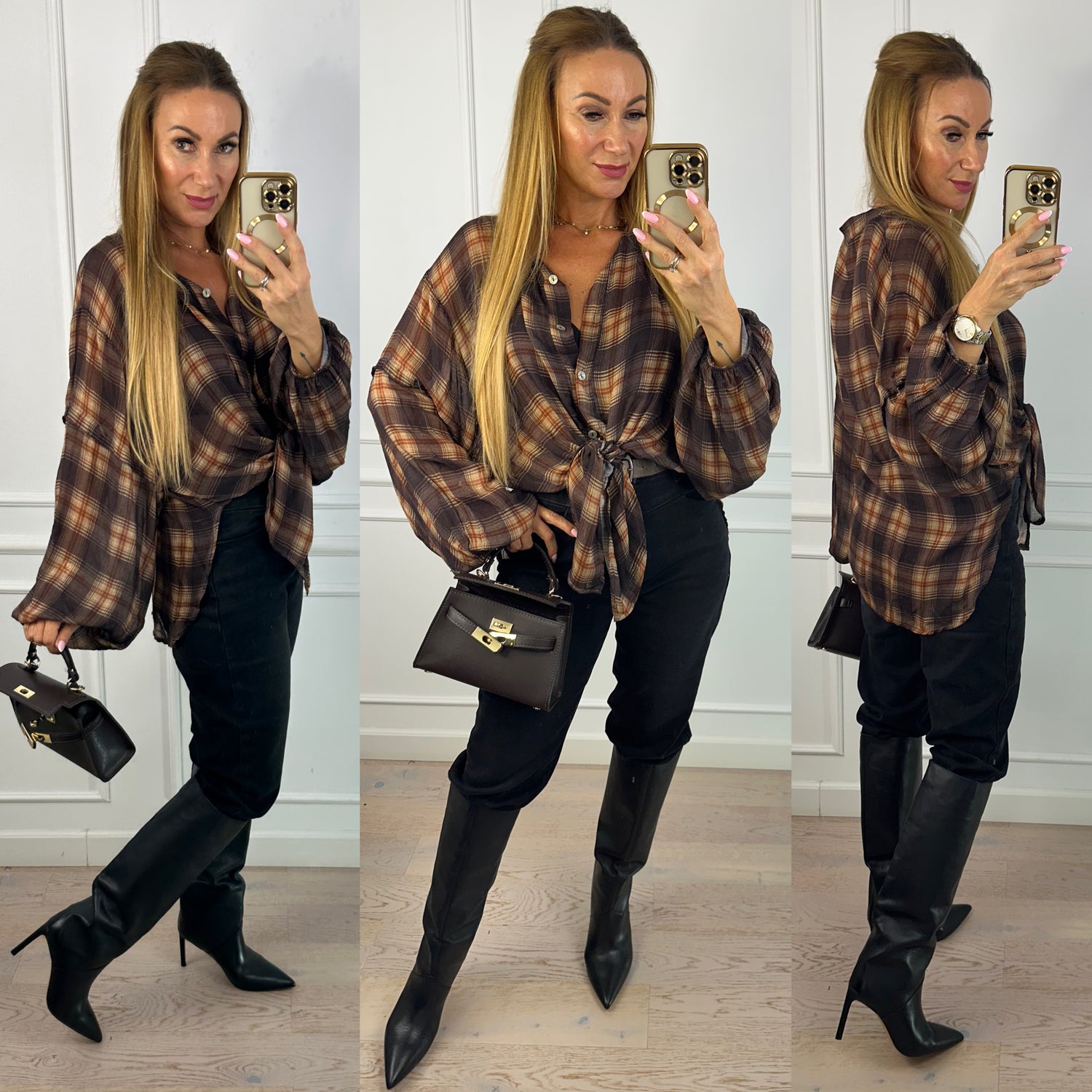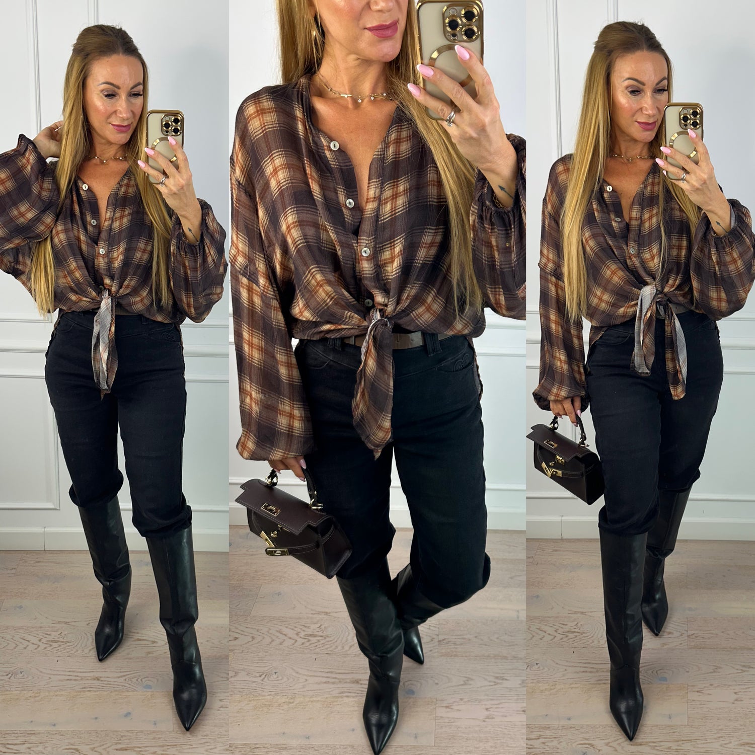Koszula w kratę SOFILA / CZEKOLADOWA