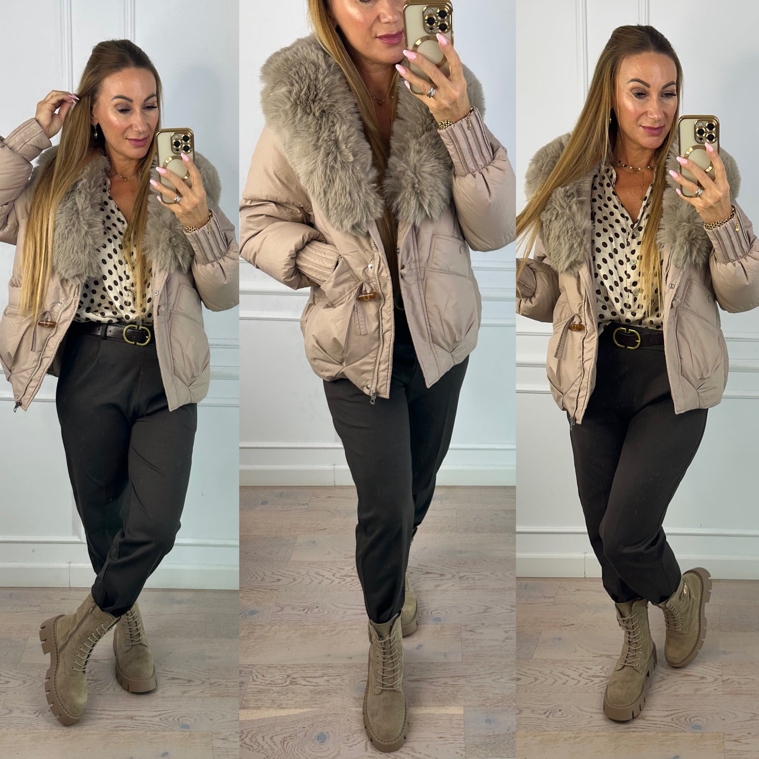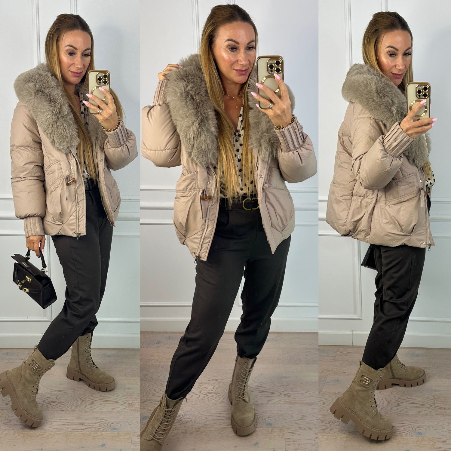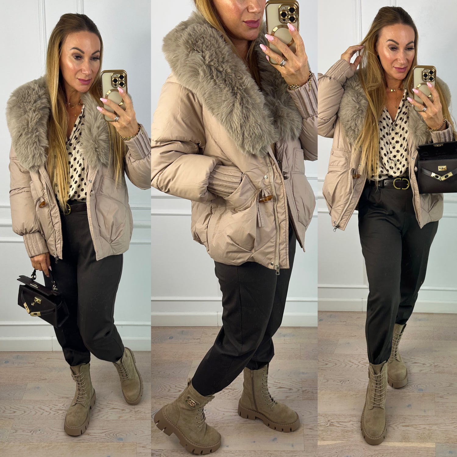 Kurtka z futerkiem ZURIE / BEŻOWA