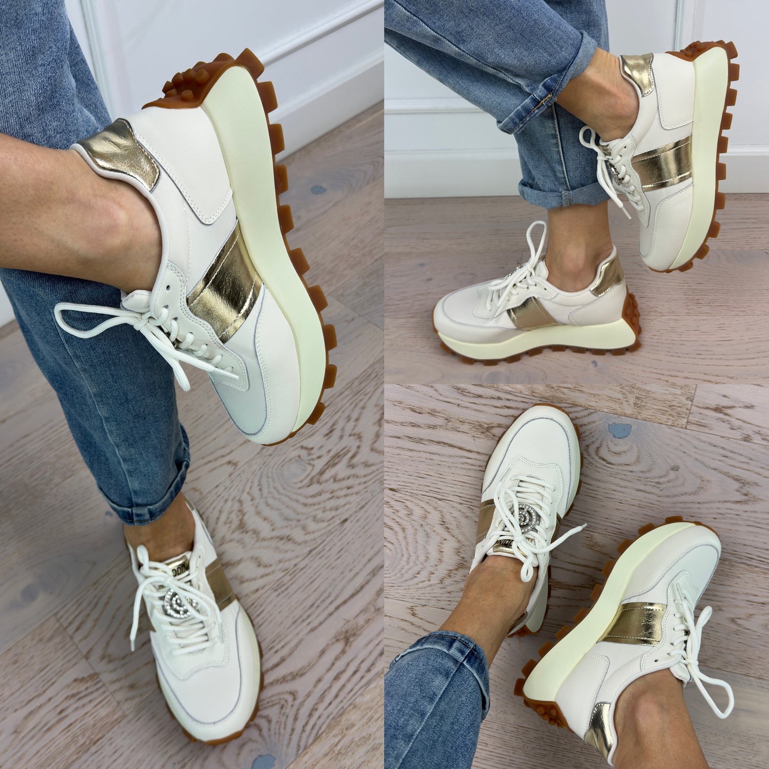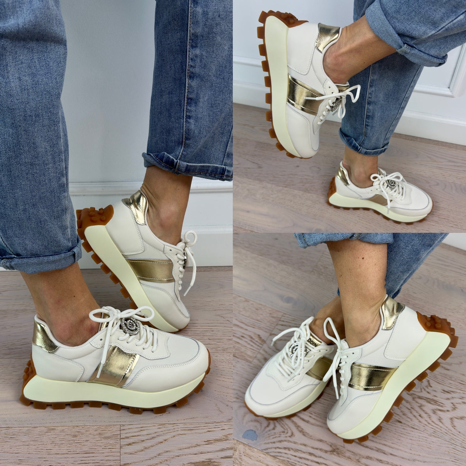 Skórzane buty sportowe MADRID / BEŻOWO-ZŁOTE
