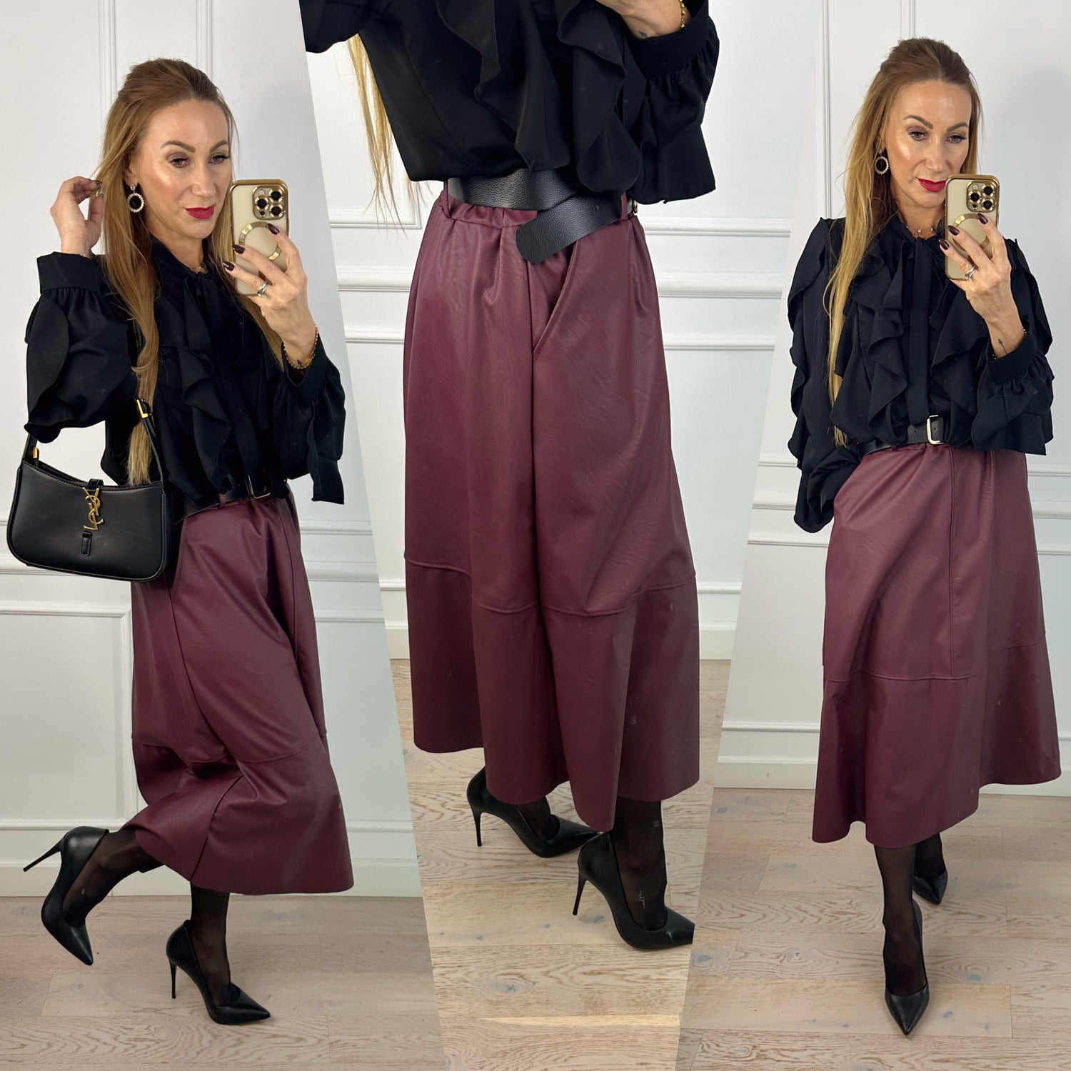 Spódnica z eko skóry CAYLA / BURGUNDOWA