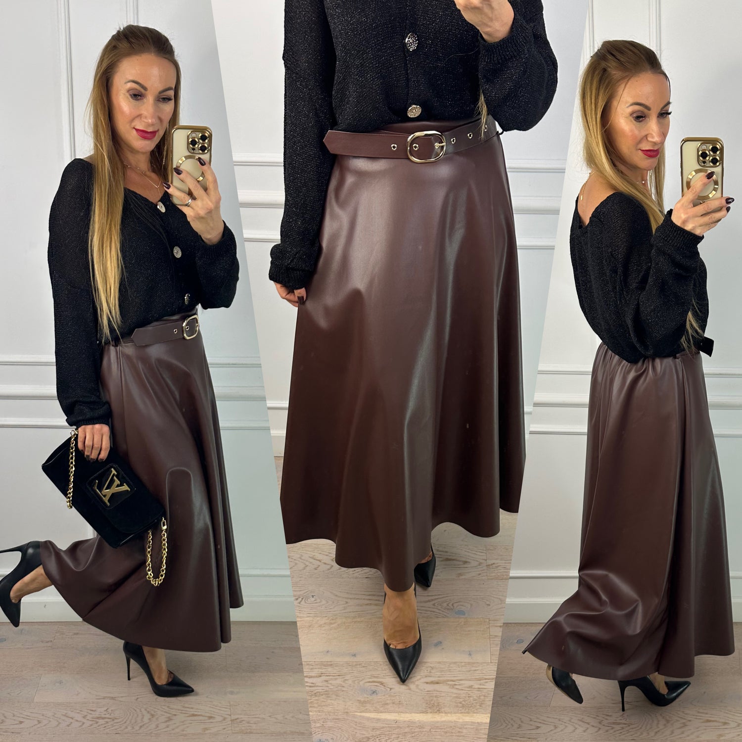 Spódnica z eko skóry VALERIA / BRĄZOWA