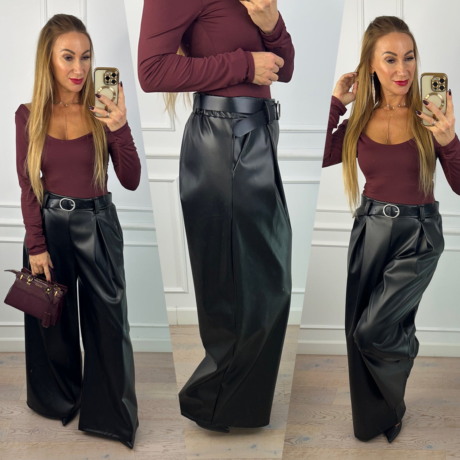 Spodnie WIDE LEG z eko skóry STUDIO / CZARNE