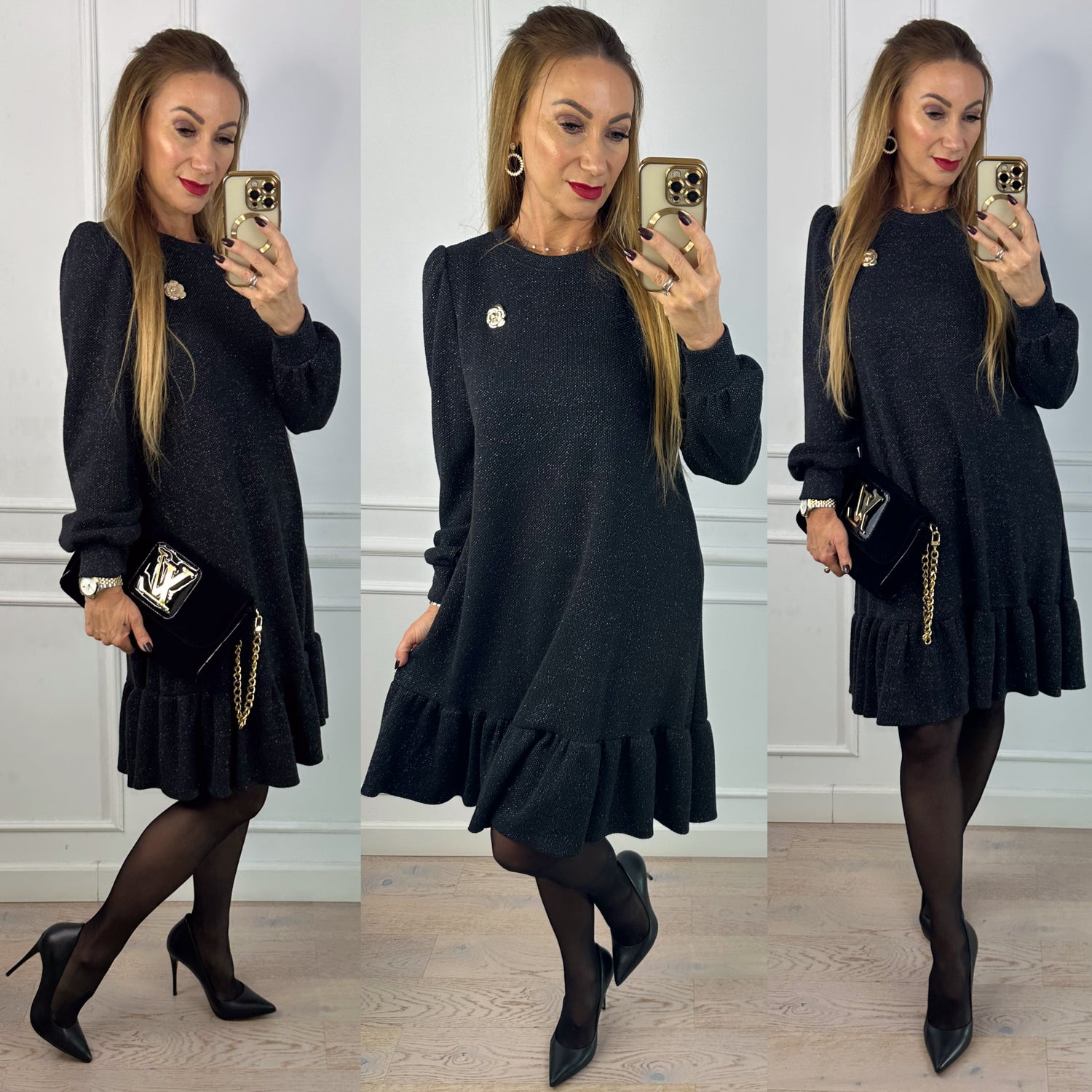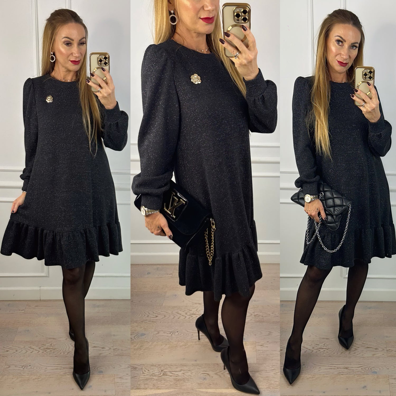 Sukienka z błyszczącą nitką NASTAJA / CZARNA