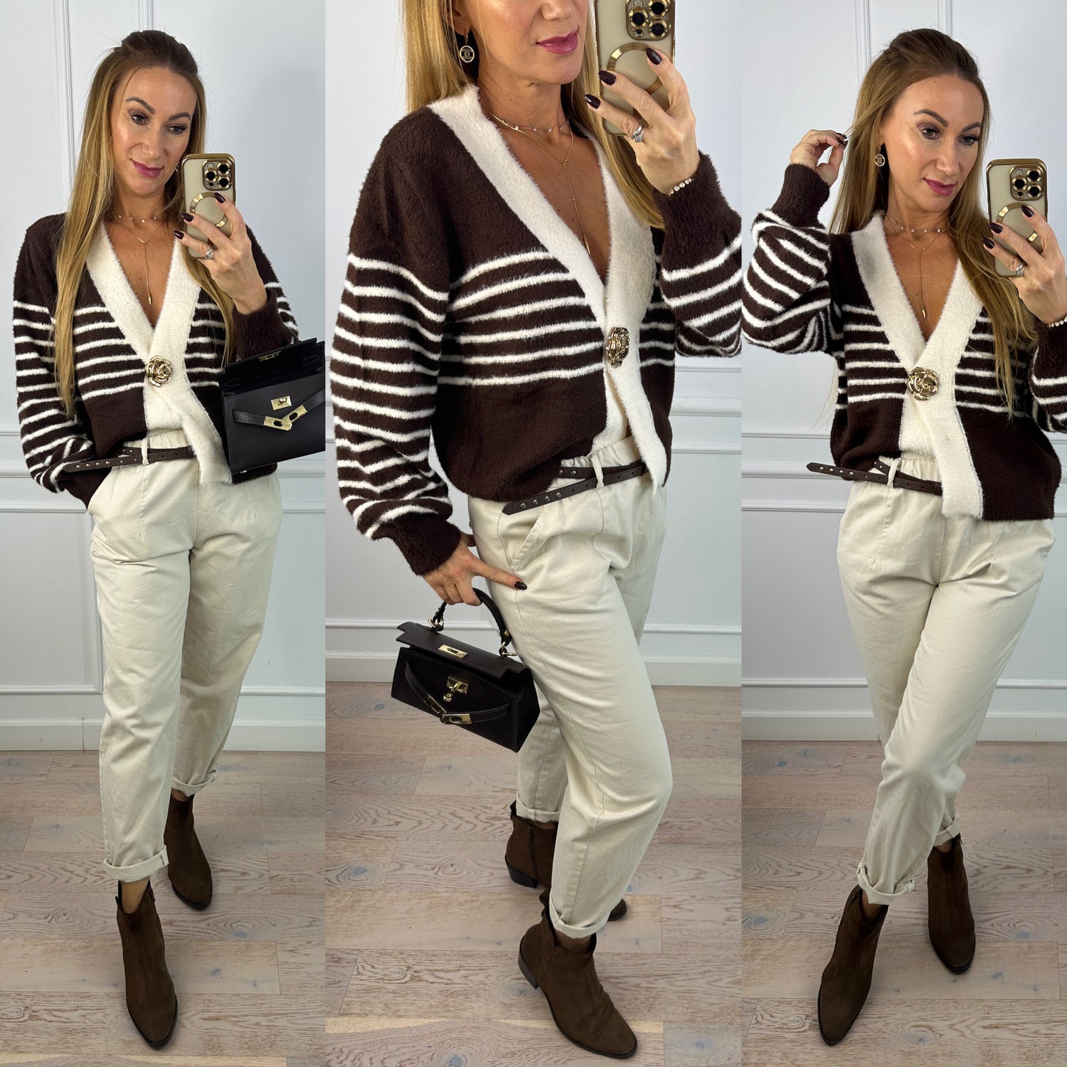 Sweter TALEDA / BRĄZOWO-KREMOWY