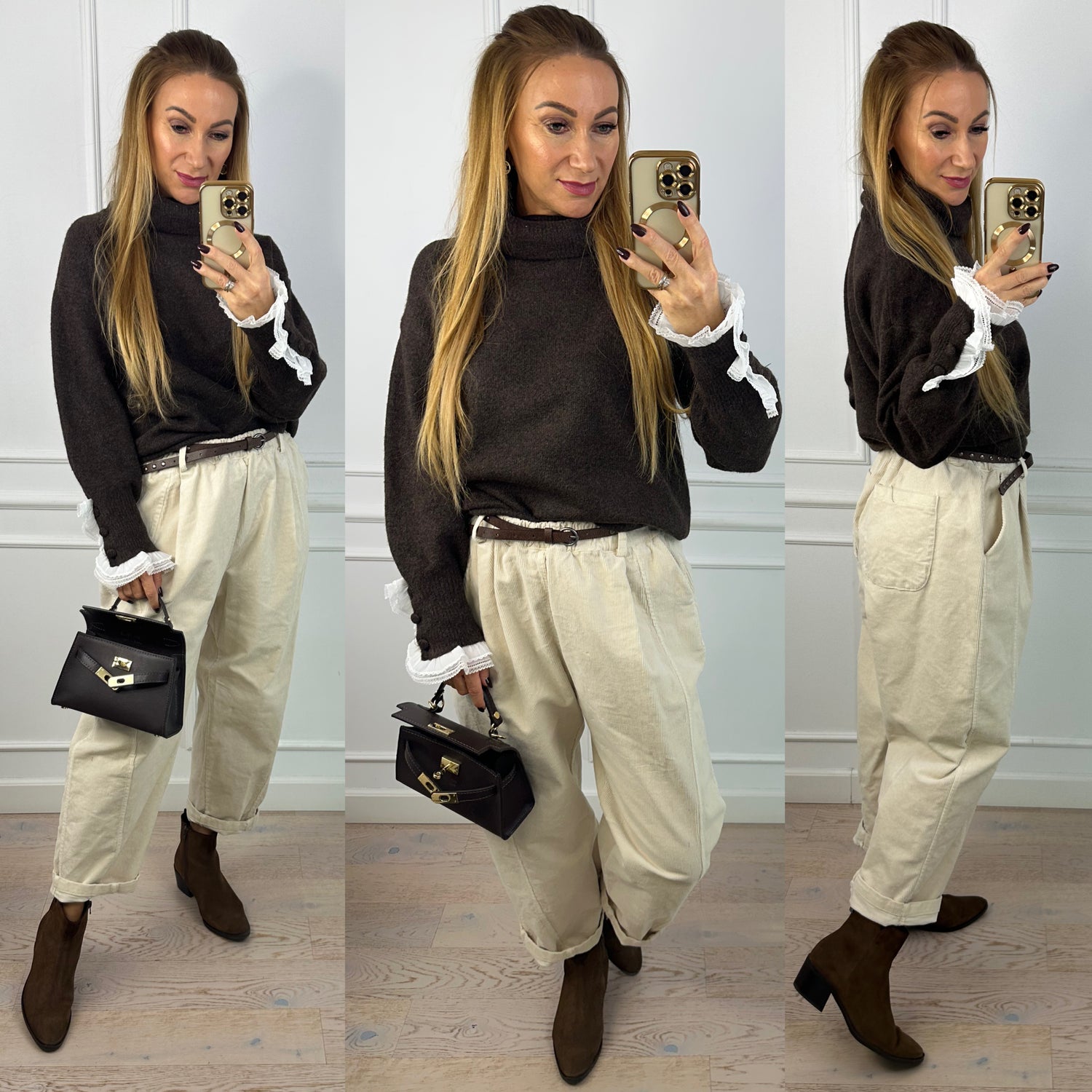Sweter z wełną i wiskozą MAORO / CZEKOLADOWY