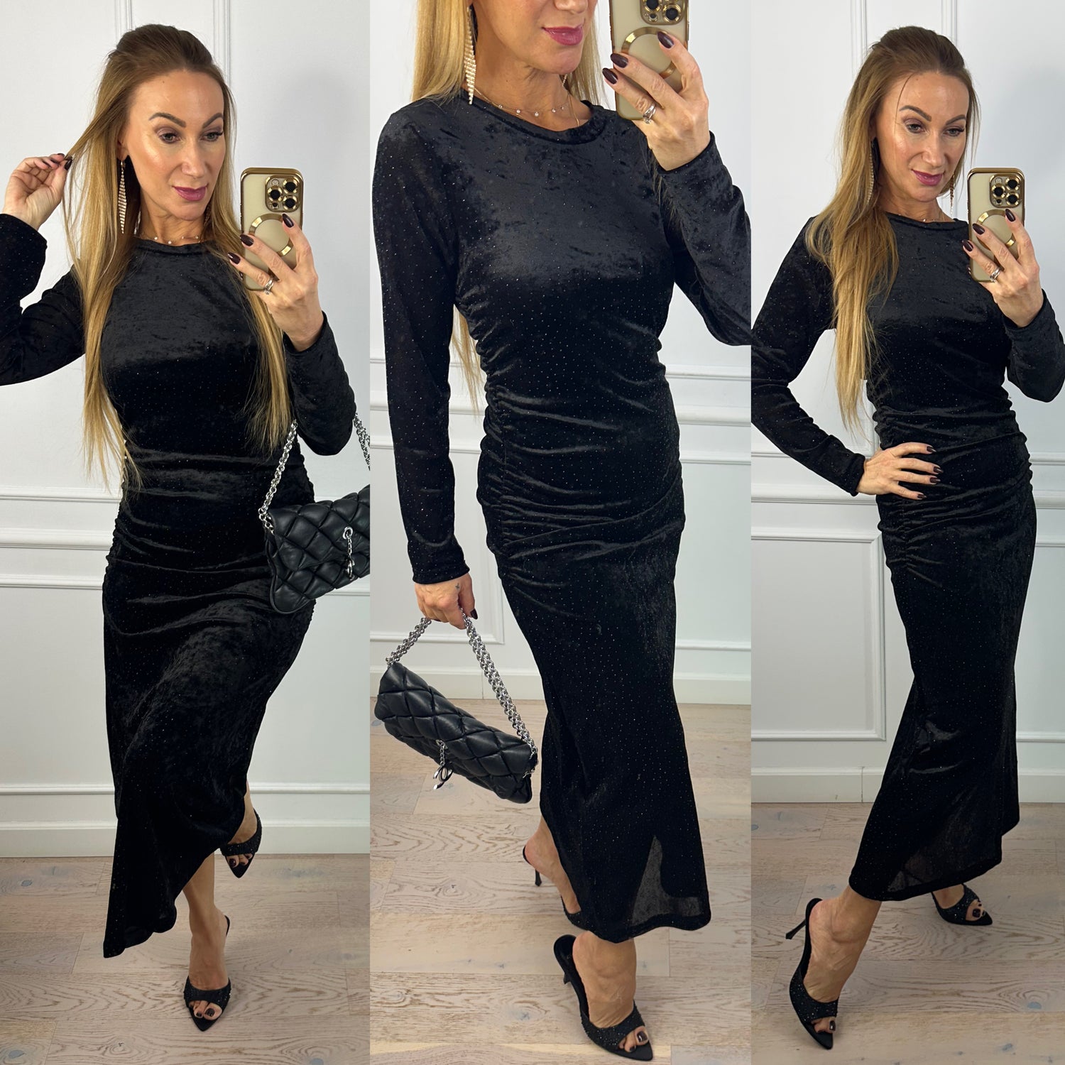 Welurowa sukienka z błyszczącymi dżetami VILEA / CZARNA